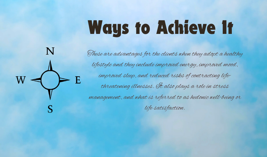 These are advantages for the clients when they adopt a healthy lifestyle and they include improved energy, improved mood, improved sleep, and reduced risks of contracting life-threatening illnesses. It also plays a role in stress management, and what is referred to as hedonic well-being or life satisfaction.